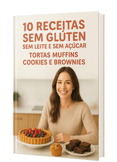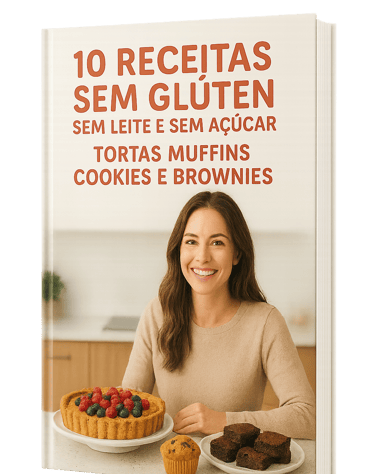 Método prático com 10 receitas deliciosas de tortas, muffins, cookies e brownies sem glúten, sem leite e sem açúcar. Fácil e saudável!